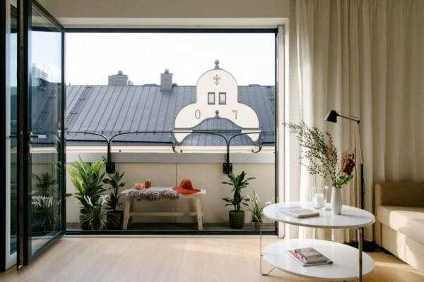 Inspirasi model ini dikatakan tepat untuk ruangan yang jaraknya tidak terlalu luas antara balkon dan pintu. Karena itu, pada balkon dapat ditambahkan satu kursi pelengkap dan beberapa tanaman. Alhasil, balkon terlihat sederhana namun tetap cantik.