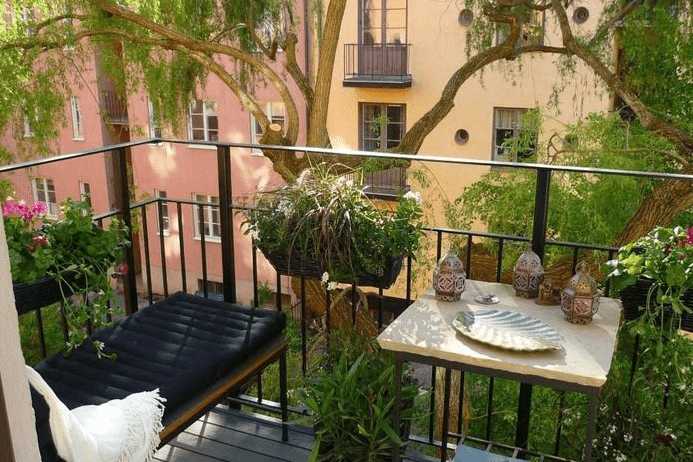 Inspirasi satu ini menjadikan balkon minimalis ini tampak klasik. Pernak-pernik klasik di meja adalah kuncinya. Taruh juga pernak-pernik di gantungan dan kursi, kemudian tambahkan unsur alam. Jadilah balkon bertema klasik yang segar untuk melepas penat.