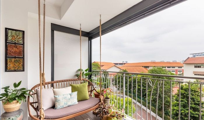 Ingin rancangan balkon minimalis yang tampak kekinian dan terbaru? Elemen satu ini tidak boleh dilewatkan, yakni kursi gantung. Pilih kursi gantung yang ukurannya pas dengan spasi pada balkon, agar serambi tidak terasa sempit dan sesak sebagai tempat bersantai.