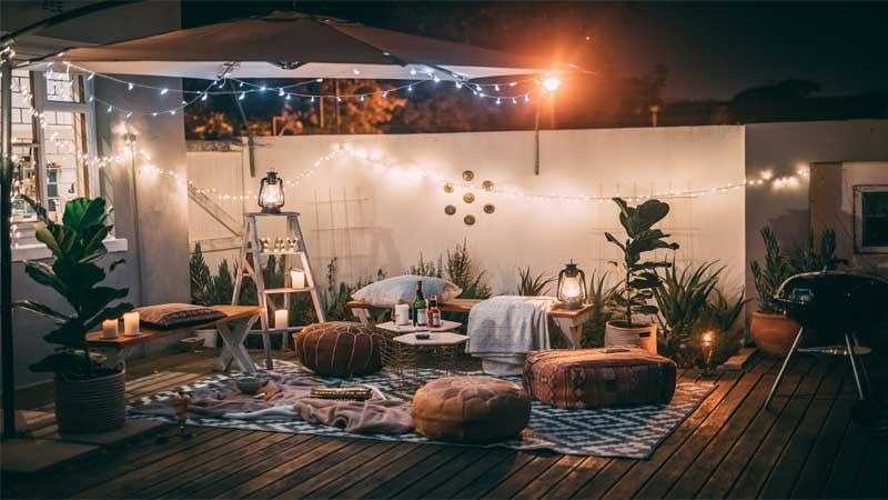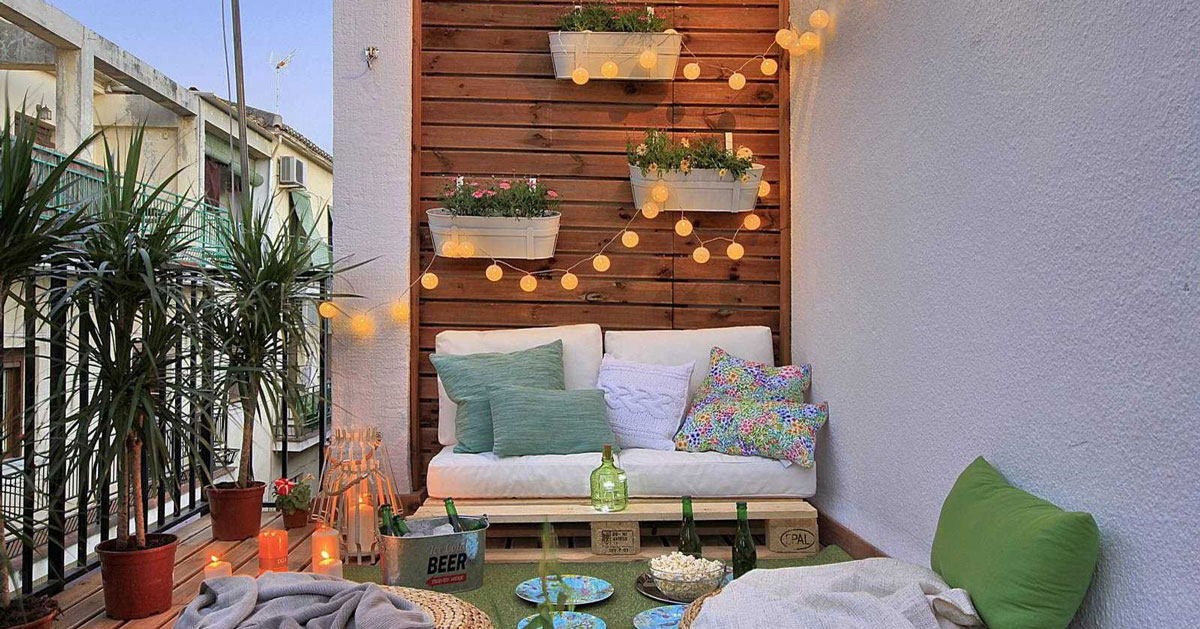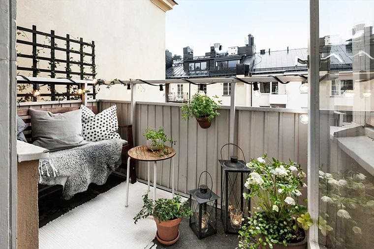 Inspirasi balkon minimalis ini pun sederhana dengan tambahan lampu-lampu hias cantik untuk memanjakan penampakan. Pilihan ini ternyata kerap dipilih menjadi opsi untuk mendesain balkon, ditambah dengan kursi serta bantal-bantal empuk untuk menjadikan aktivitas bersantai lebih nyaman.