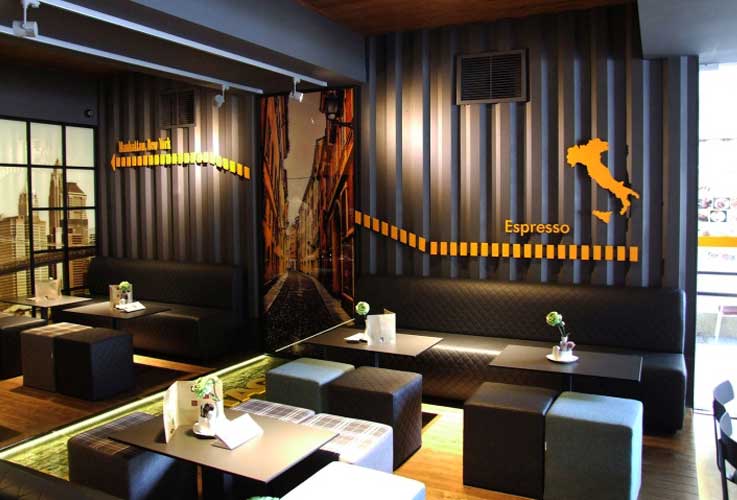 Tempat mungil tidak lantas mengubur niat untuk memiliki cafe dengan konsep elegan yang sangat eksklusif. Pemilik cafe dapat memberikan sentuhan warna-warna yang cenderung berani sekaligus terlihat seksi.