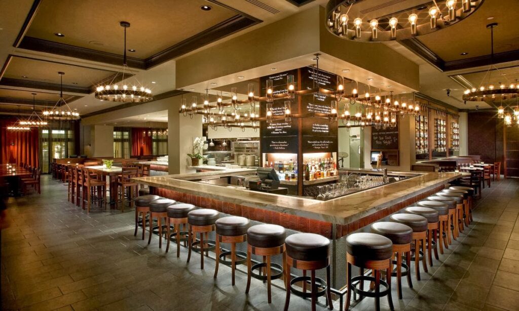 Tidak ada salahnya menerapkan desain cafe dengan gaya maskulin. Desain bangunan cafe ini mengandalkan warna-warna metalik dan gelap sebagai aksen yang dominan. Pemilik cafe bisa juga bisa mengkombinasikannya dengan palet monotone yang berkarakter.