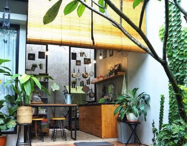 Beberapa rumah memiliki luas tanah yang tidak terlalu lebar. Hal ini menyebabkan beberapa pemilik memilih desain dapur mungil terbuka daripada dapur di dalam rumah. Jadi, lebih memaksimalkan bagian luar dari bangunan utama untuk membangun dapur yang fungsional.