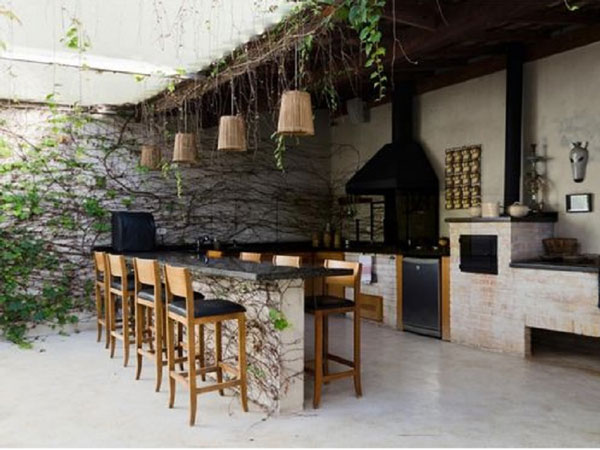 Dapur mungil terbuka ini mirip sekali seperti bar karena memiliki meja panjang dan juga kursi yang sangat tinggi. Lokasinya biasanya menempel dengan bangunan utama tetapi langsung mengarah ke halaman di bagian belakang.