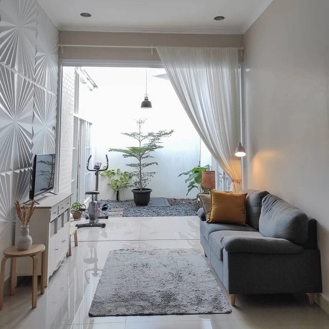 Agar akses jalan tetap mudah, pastikan hanya memasukkan sedikit barang misalnya satu sofa kecil atau berukuran sedang. Bisa ditambah dengan karpet juga untuk opsi duduk lesehan atau saat penghuni rumah sedang berkumpul bersama dan kekurangan tempat duduk di sofa.