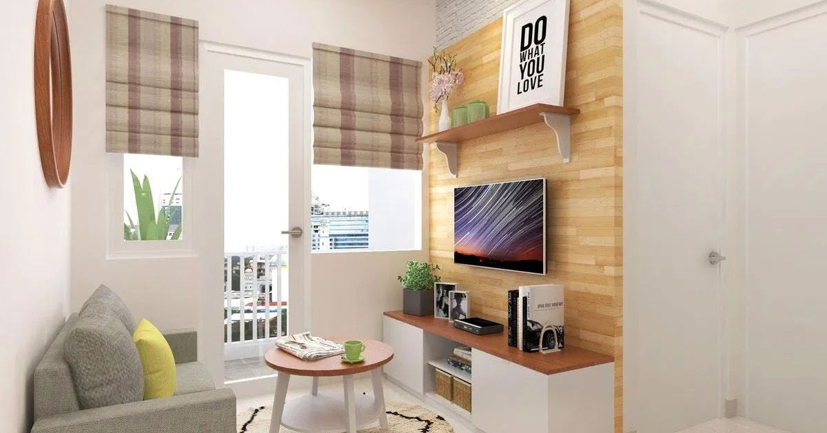 Tak perlu khawatir dengan ukuran rumah super terbatas karena konsep yang tepat bisa merubah semuanya menjadi tampak indah dan optimal, seperti salah satunya desain ruangan TV pada foto di atas.