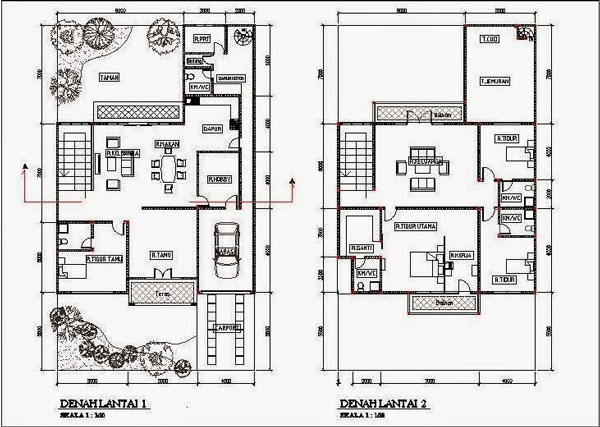 2. Denah Rumah 10×10 2 Lantai, 4 Kamar Lengkap dengan Garasi