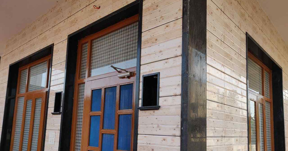 Penggunaan keramik marmer untuk dinding bagian depan rumah ini tidak hanya menambah nilai estetika saja, namun menawarkan perawatan yang mudah dan tahan lama.