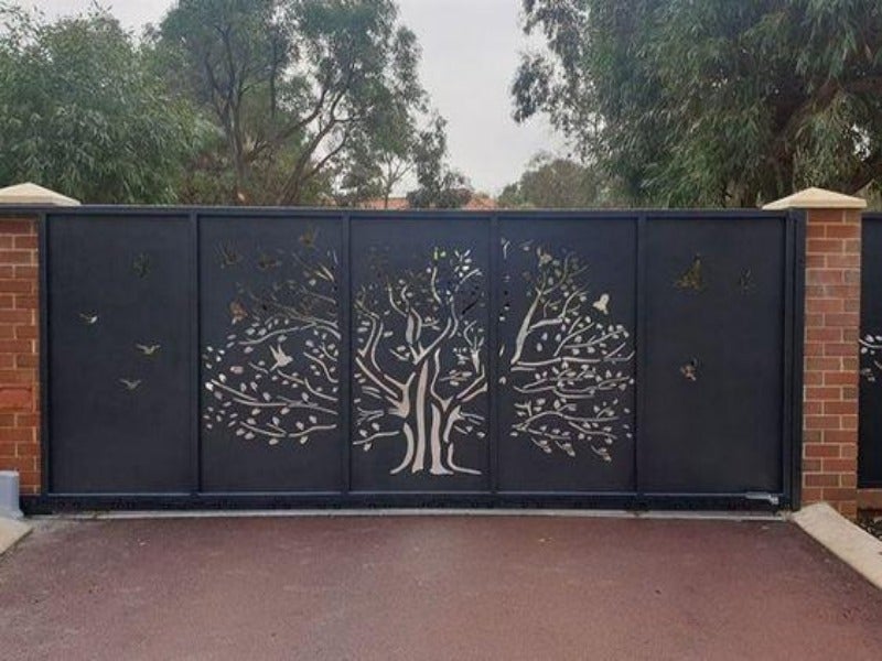 Didominasi warna hitam elegan, pagar lipat model laser cutting ini menyuguhkan ukiran desain pohon atau “Tree for Life”. Selain terlihat modern dan mewah, model folding gate ini juga memiliki makna filosofis cukup mendalam. Oleh karena itu, match dipasang pada rumah.