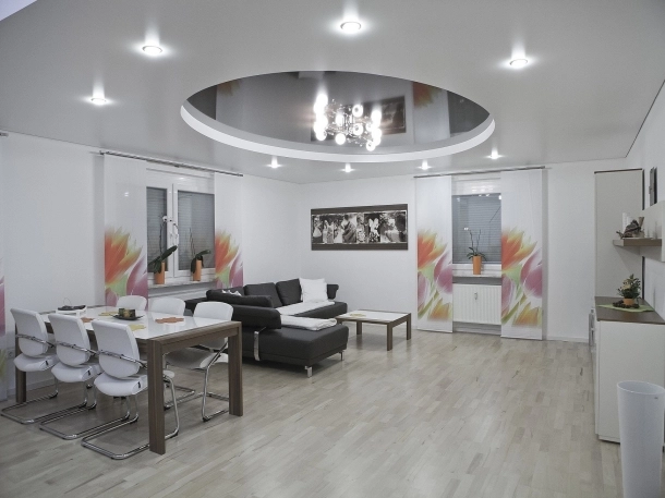 Ingin model plafon gypsum bertingkat tapi juga ingin menggunakan lampu LED di saat yang sama? Maka Anda bisa membuat desain plafon seperti pada gambar. Jangan khawatir berlebihan karena jika dipasang dengan ukuran dan desain yang benar oleh tukang berpengalaman, maka ruangan akan tampak indah.