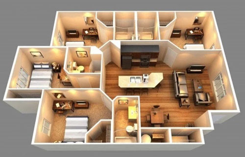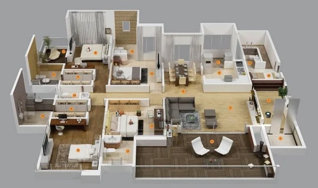 Mungkin ada sebagian orang yang belum memahami konsep ruangan 4 kamar ensuith bathroom. Konsep ensuith bathroom ini hadir dengan menyatukan ruang keluarga dan ruang tamu menjadi satu zona. Ruang tamu dan ruang bersantai untuk keluarga hanya diberi pembatas kaca minimalis.