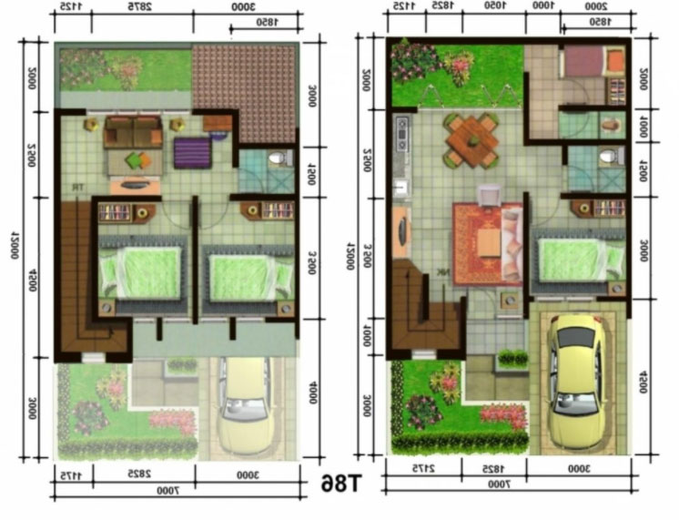Desain rumah dengan tipe ini biasanya memiliki dua lantai sehingga terlihat megah dari luar. Lantai pertama biasanya digunakan untuk aktivitas harian dan lantai 2 dimanfaatkan untuk beristirahat.