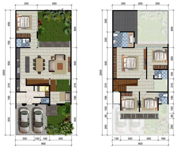Desain ini sangat cocok untuk keluarga yang memiliki jumlah anggota keluarga lumayan banyak. Bagian atas juga bisa dimanfaatkan sebagai ruang bersantai atau ruang keluarga. Bahkan, pemilik rumah juga bisa memiliki balkon yang dapat diakses dari kamar.