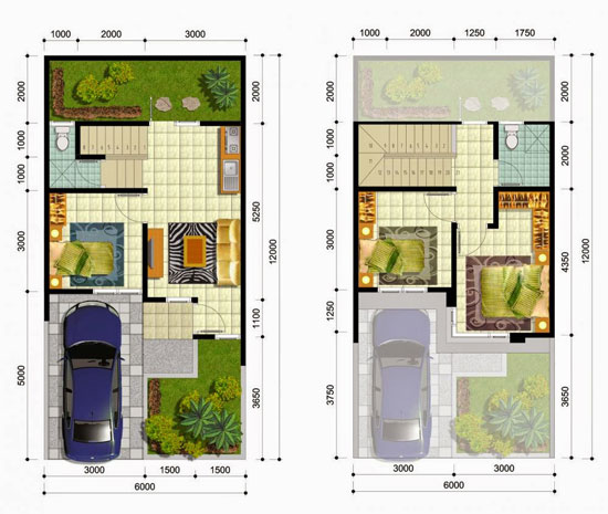 Jika pemilik rumah memiliki mobil, maka bagian halaman depannya bisa dijadikan car port dan taman kecil berbentuk pola L. Manfaatkan bagian belakang rumah juga sebagai taman yang dipenuhi tanaman hias, sehingga rumah bisa tampak lebih asri dan sejuk.