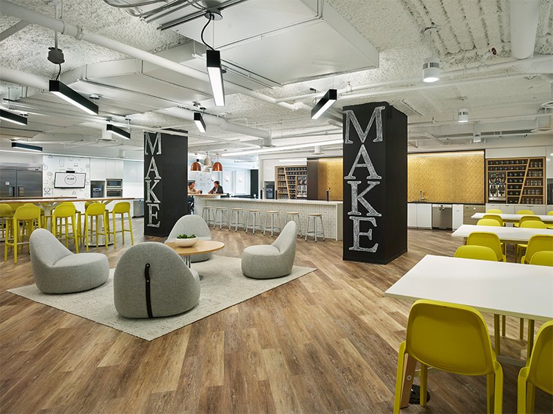 Tidak hanya sifatnya yang terbuka, kantor ini juga memiliki penataan yang tidak dikelompokkan berdasarkan divisinya. Jadi, semua karyawan bebas melihat atau berkomunikasi dengan karyawan lainnya yang berbeda divisi.