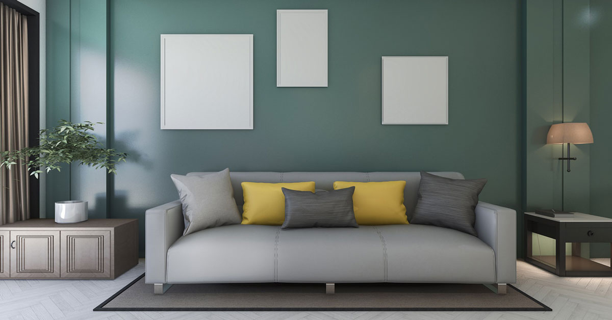 Keindahan dari warna hijau mint akan bertambah apabila dilengkapi dengan berbagai aksesoris di ruang tamu, seperti jam, lukisan, pajangan, hiasan dinding, dan lain-lain.