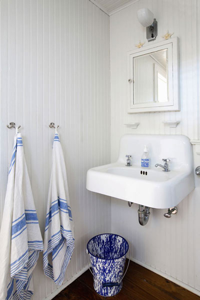 Kamar mandi bergaya victoria bisa dilengkapi dengan model wastafel dengan gaya sama dan sejumlah elemen relevan lain seperti pada kran air, tempat sikat gigi, meja wastafel, serta model dan warna dinding.